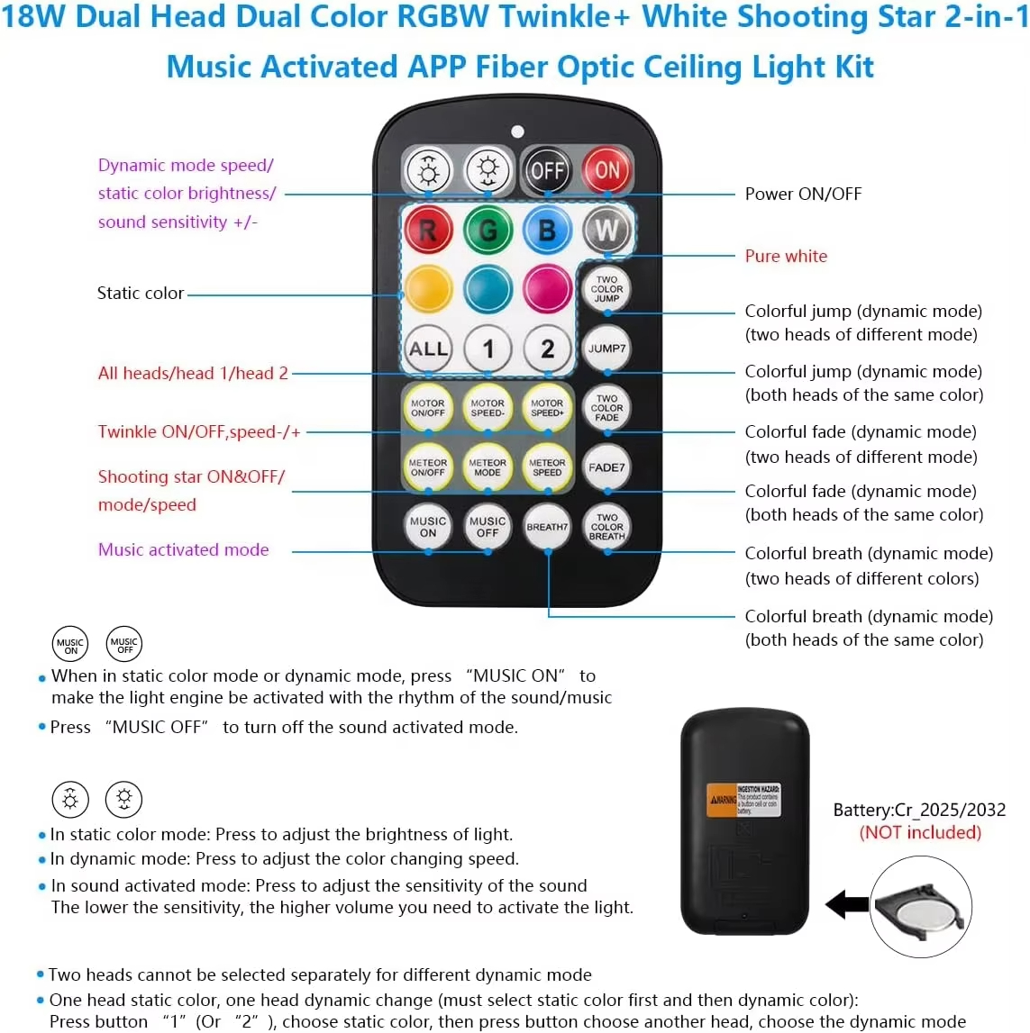 18w shooting star dual hole blinking 2 in 1 fiber optic light kit starlite commercial car starlight ceiling light kit